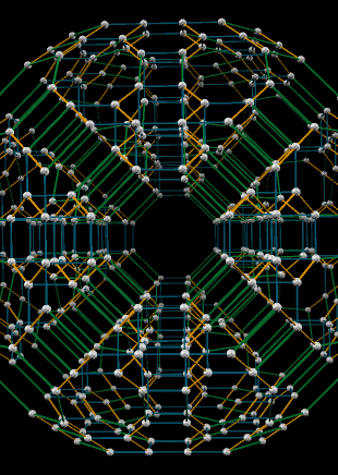I visited the London Knowledge Lab on June 22, 2007, to commune with some fellow Zome enthusiasts. As we often do, we had planned a large-ish Zome construction as part of the fun. Often we seek to build something that nobody has done before, typically a 3-dimensional shadow of some 4-dimensional polytope with the symmetry of the "hyper-dodecahedron", or 120-cell. Since LKL is already the site of the largest of those efforts to date, I wanted to look for novelty in a novel direction. The next largest 4D symmetry group is that of the 24-cell, and I had recently added vZome support for polytopes in that family, so I decided to attempt the largest member of that family.